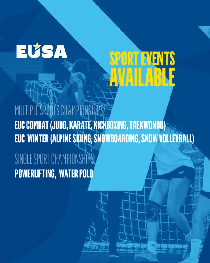 For the first time in 2027, EUSA will organise the European Universities Powerlifting Championships, following many successful editions of university cups in the sport, and as a result of EUSA's cooperation with the European Powerlifting Federation.