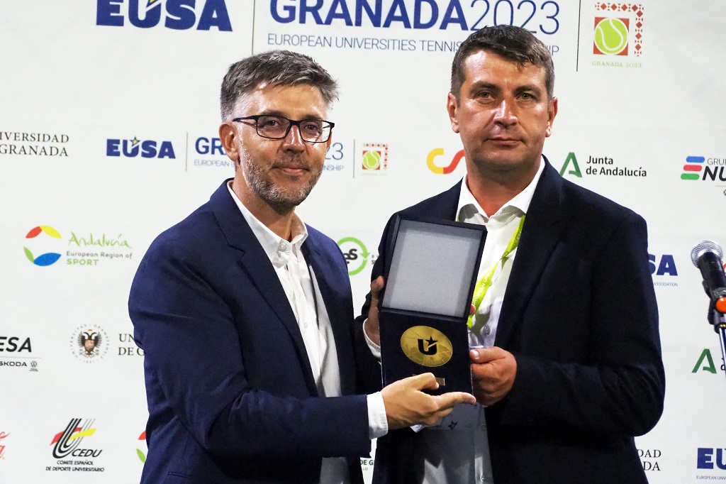 The medals and awards were presented by Mr. Miguel Martinez, President of the Royal Society Tennis of Granada, Mr. Juan Luis Benitez, Vice-rector for Student Services and Campus Life of the University of Granada and Mr. Liviu Matac, EUSA Auditor and SCAC Chair.