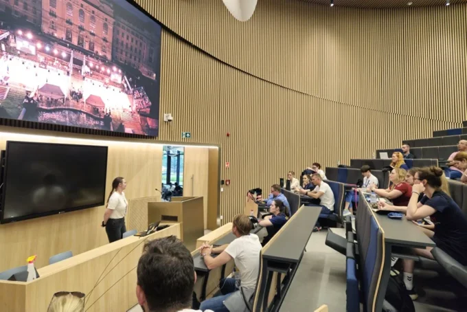 On Thursday, May 23, the attendees along with the OC staff members, moved to the city of Debrecen, visiting also in this city all the venues where the competitions will take place, followed by visits to the catering locations, offices, and spaces designated for NUSA, the accreditation venue and the dormitories of Debrecen University. During these visits, the NUSA representatives had the chance to inspect and get more detailed information about the courts and competition areas.