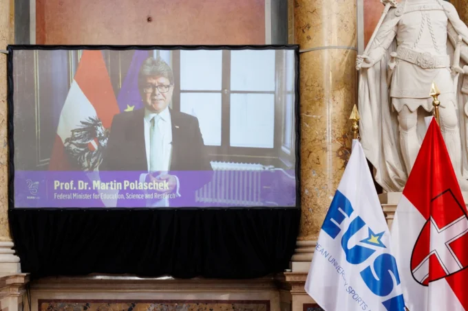 The conference was opened with welcoming words both in person and via video messages, by Mr Adam Roczek, EUSA President; Mr Martin Polaschek, Federal Minister for Education, Science and Research; Mr Nikolaus Hautsch, Vice-Rector of the University of Vienna; Mr Leonz Eder, President of the International University Sports Federation; and Mr Spyros Capralos, President of the European Olympic Committees.