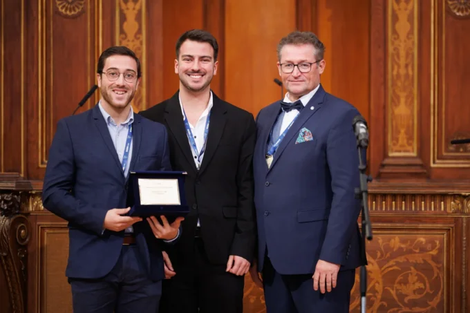 The recipients of the Enno Harms Fair Play Award are the women’s futsal team of the University of Coimbra. The award was presented by Mr Joerg Foerster, EUSA Vice-President, and on behalf of the European Fair Play Movements—its Honorary President, Mr Christian Hinterberger—and received by the representatives of the Coimbra Academic Association, the President, Mr Renato Daniel Simoes, and Vice-President Mr Diogo Jorge Lopes.
