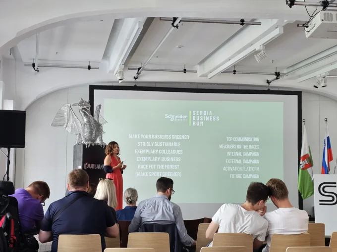 The panel session also featured Tijana Popadić from SportIT, who discussed experience of the Serbia Business Run, the largest corporate event in Serbia, which connects employees from various companies through a series of running events. Schneider Electric, recently recognized as the world’s most sustainable company, revolutionized the event by implementing sustainable measures using their solutions. These measures included solar-powered screens and devices, as well as improved waste and plastic management.