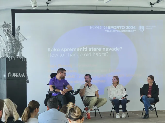 The guests discussed how to change old habits, what has changes over the years in terms of sustainable sport events in Slovenia, what are the most important steps towards a more sustainable sport events, inclusivity and shared many examples of best practices used by their own organisations and implemented through their careers.