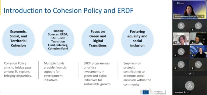 Welcome and opening were done on behalf of the European Commission by Peter Fischer, Sport Unit of DG EAC, and Simona Guagliardo on behalf of ICF, introducing the main objectives of the event - introducing the CoP members to the European Regional Development Fund (ERDF) and discussing relevant examples of co-funded projects on sustainable sport infrastructure under the programme.