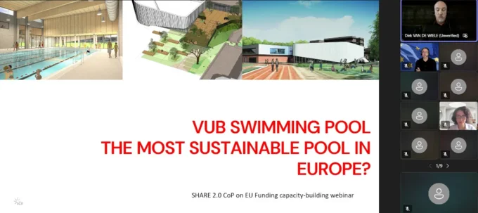 Dirk Van de Wiele from Vrije Universiteit Brussel shared their project of building a new swimming pool at VUB. Through giving an overview of the initiative, the participants also learned why the initiative is considered a good practice, and what were the main challenges of the preparation and implementation - including funding.