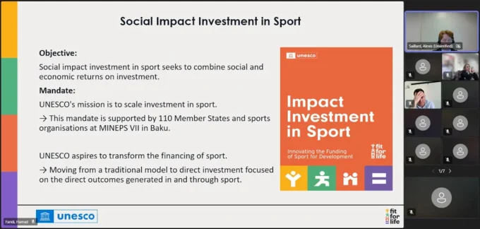 In the first part, a keynote presentation "Investing in sport as a catalyst for social change” was done by Alexis Saillard on behalf of the UNESCO Sport Section. After introducing the general framework and Fit for Life platform, some specific initiatives and actions were also shared with the participants.