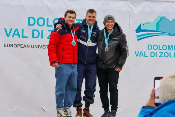 In the men’s competition of Parallel Giant Slalom, three competitors representing 3 Bulgarian universities took the winning places on the podium: Tervel Zamfirov from University of Forestry winning the gold medal, Kristian Georgiev from National Sports Academy Vasil Levski with the silver medal and Alexander Krashniak from Technical University Sofia winning the bronze medal.