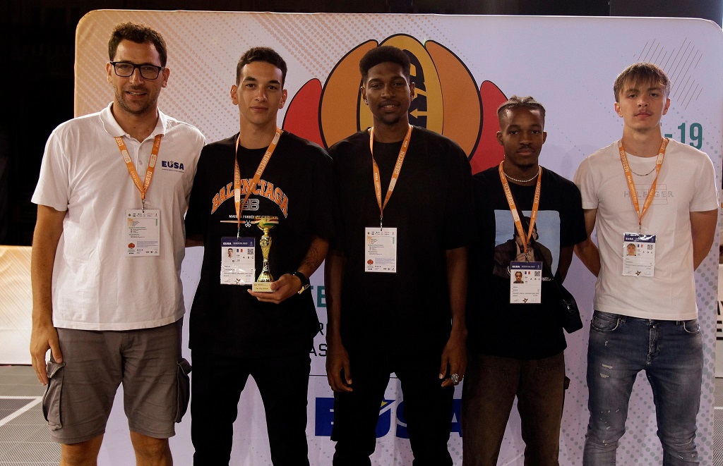 The EUSA flag was passed to representatives of the University of Ljubljana, Slovenia, which will be the next organisers of the European Universities Championship in 3x3 Basketball, taking place from June 28th until July 2, 2025.