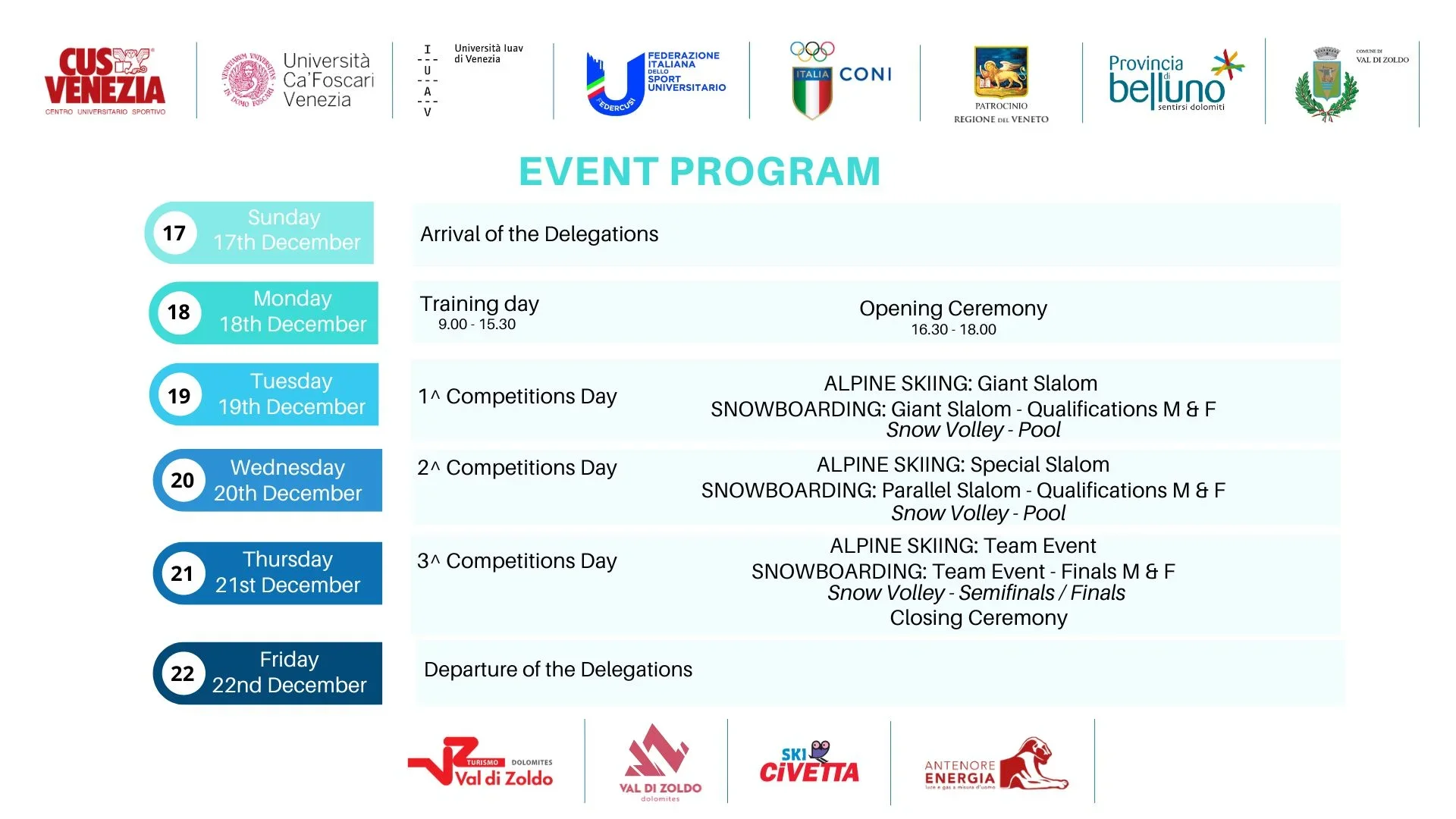 This beautifully sounding and looking area is Val di Zoldo, Italy and that is the destination to be this December, from 18-21 taking part of the very first European Universities Winter Championship.