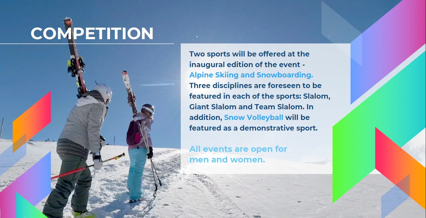 Competitions in Alpine Skiing, Snowboarding and Snow Volleyball, will be featured and available for competition.