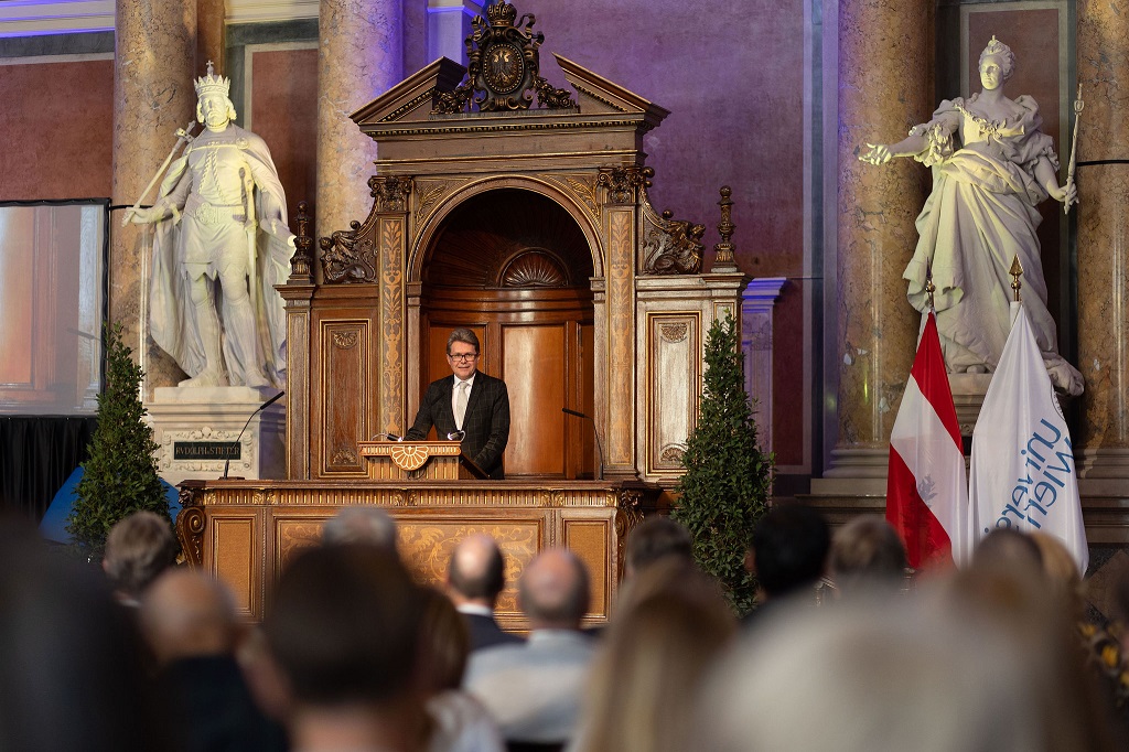The Federal Minister of Education, Science, and Research Mr Martin Polaschek and the Rector of the University of Vienna Mr Sebastian Schütze give ceremonial speeches.