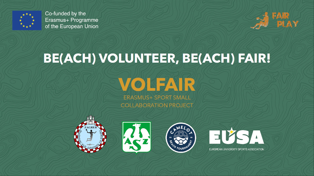 The VOLFAIR project is co-funded by the Erasmus+ Programme of the European Union. Project partners are Academic Beach Handball Club Zagreb (CRO), University Sports Association of Poland - AZS (POL), EUSA Institute (SLO) and Camelot Beach Handball Tournament (NED).