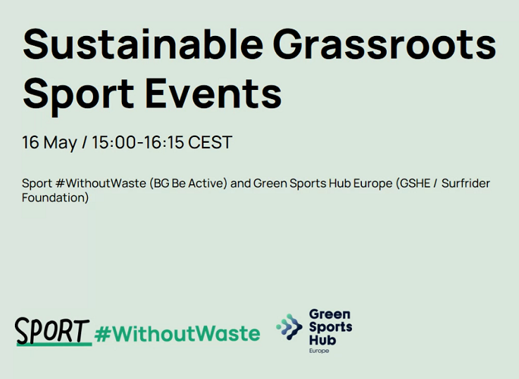 On 16th of May an online webinar was organized in collaboration between Sport #WithoutWaste (BG Be Active) and Green Sports Hub Europe (GSHE / Surfrider Foundation) with the topic of Sustainable Grassroots Sport Events.
