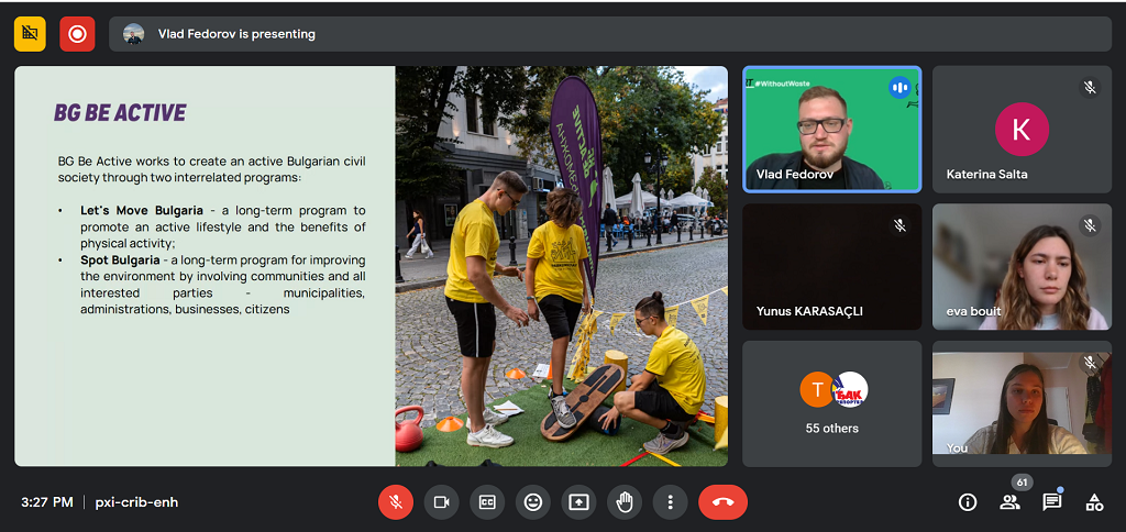 Throughout the online session with both partners, the Sport #WithoutWaste (BG Be Active) and Green Sports Hub Europe presented existing tools for supporting grassroots sports events along with the practical concepts, approaches, and solutions developed so far.