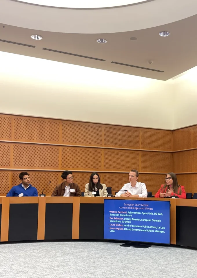 The program brings together students from 16 different countries, creating a truly multicultural and inspiring environment. We all started our studies in Lille, France, at the University of Lille. This semester laid the academic foundation of our program, where we explored topics such as international sports governance, ethics, and public policy. Beyond the classroom, we also had the chance to visit iconic institutions like the French Football Federation in Paris, which gave us a deeper look into how national sports bodies function at the highest levels. We also visited the European Parliament in Brussels, Belgium, where we had a chance to discuss the European Sport Model. The atmosphere in Lille was intellectually demanding, yet exciting—it was our first taste of what this master’s would be all about. Also, I got nominated by my fellow classmates after the first semester to be the student representative of the Sports Industry specialized track, which was a great honor to also promote and represent the students’ voice throughout the program.