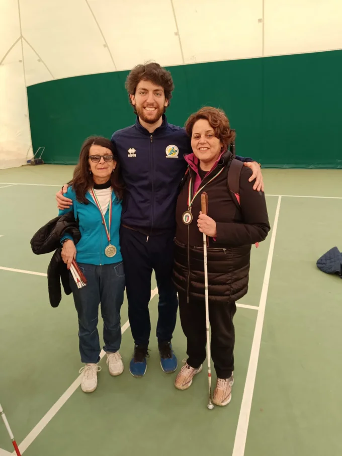 The opportunity to take Blind Tennis courses came in April 2021 when the company I still train for, called “Playmore!”, gave me the chance to follow Blind Tennis courses. For the first time I was surprised that blind and visually impaired people could play, a positive shock that gave me the chance to take an interest in this course and follow into it with more curiosity. This opened new possibilities such as being able to travel quite regularly to tournaments and competitions, both national and international. I took part in different tournaments like in Sopot and Krakow in Poland. In these competitions, beautiful team groups were created and new theories were applied to win the tournaments, dynamics that impressed me immediately and that involved myself personally. I felt that I grew up a lot as man and person, a touching experience that gives you a lot of satisfaction on a human level.