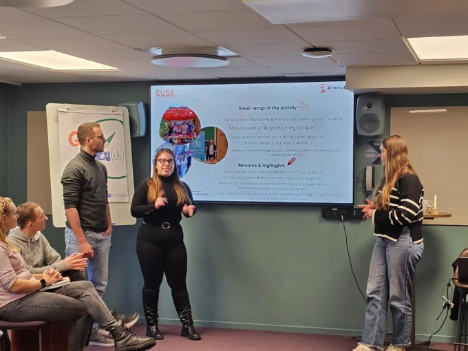 The topic covered with the workshop done by EUSA Communications Officer – Kiki Hristova, covered the topics of communication campaigns, youth engagement in sport and integrity in one. Within the workshop the participants had the chance to create a vision board of personal goals related to more inclusive and fair sport community, as well as tools how to reach more youth engagement and to create better and more open sport opportunities for all. The participants also had the chance to have short discussion on scenario-based situations, trying to use their voices, ideas, and tools to resolve a given problem within the scenario.